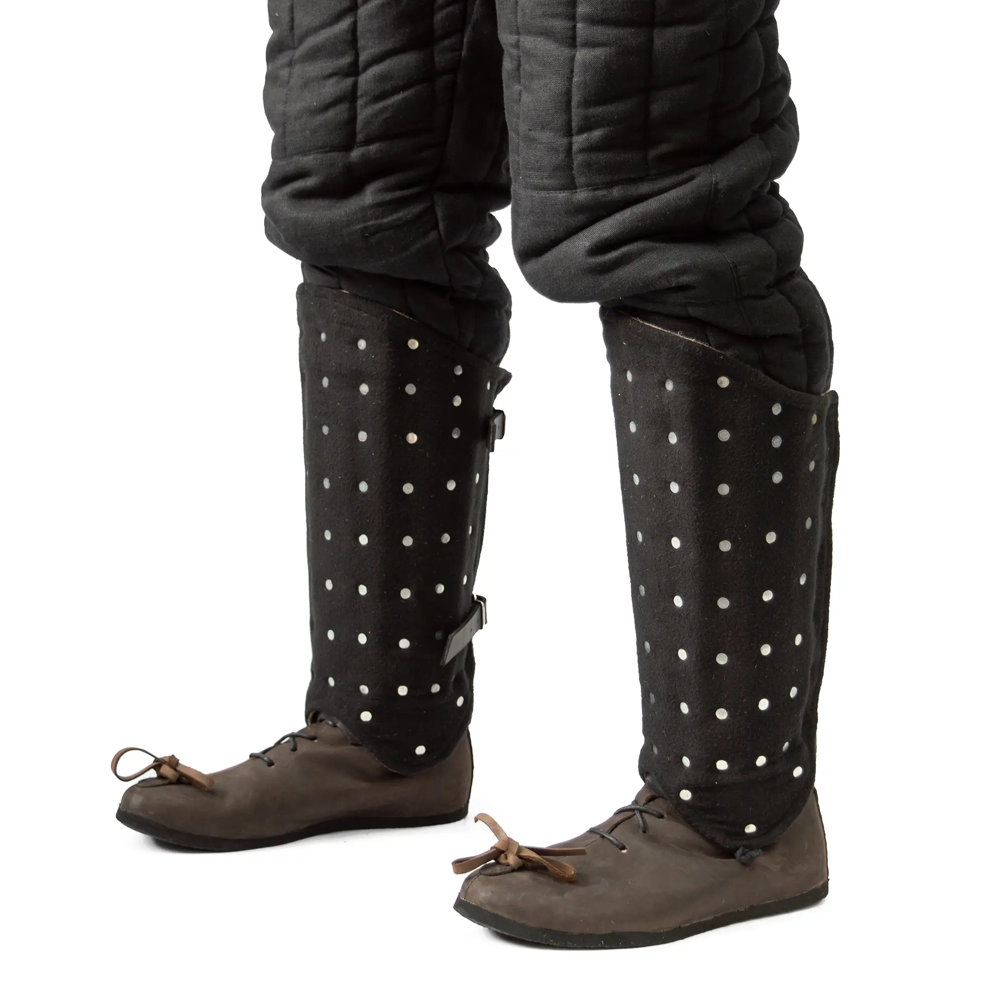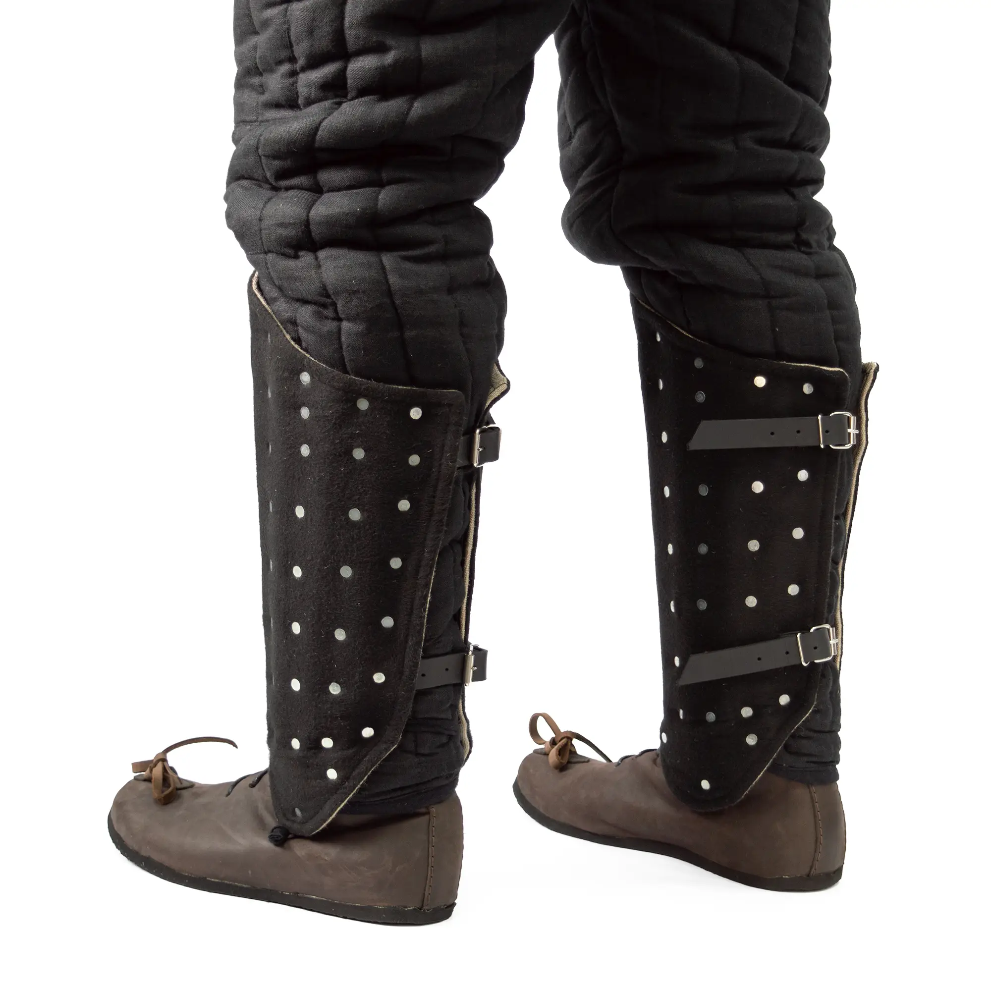 Full-leg protection with mobility and comfort. These Brigandine Greaves use overlapping plates on a fabric base, giving excellent defense while staying flexible for both buhurts and single combats.