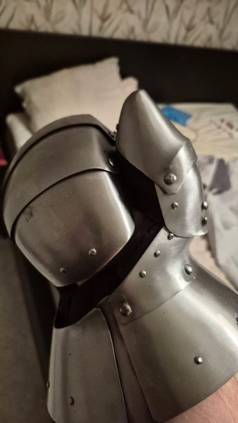 Hardened mittens with closed thumb “Gerald” – excellent steel protection for your hand. These gloves are historical stylization, developed on the basis of separately existing elements of medieval analogs. Created to protect your hand from any strikes. Your palm is one of the most vulnerable places to hit in a medieval battle.