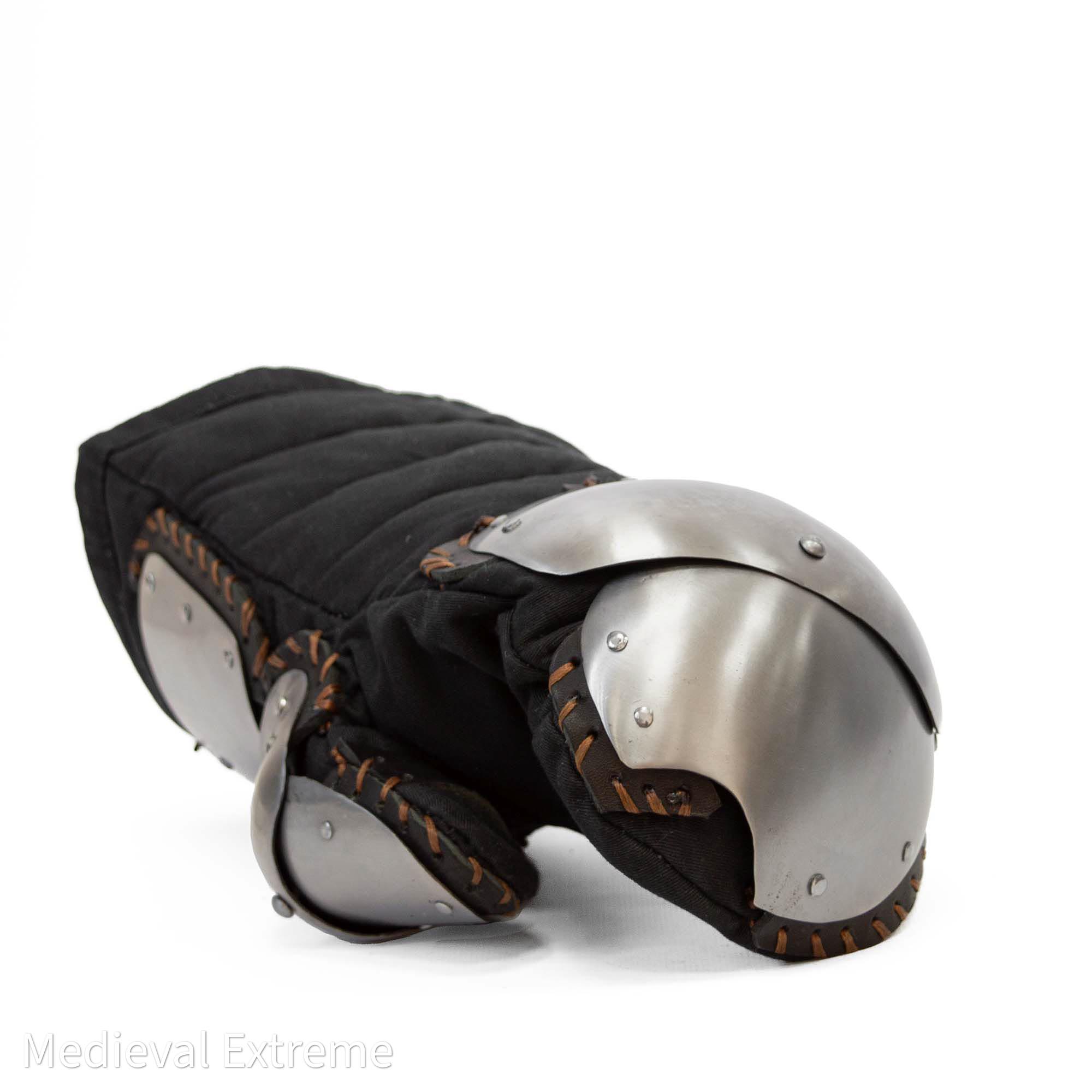 The light shield mitten is designed specifically for medieval combat and intended for use with shields to keep your fingers protected during intense fights. This updated version is lighter and more compact, providing a tighter fit and improved control when holding the shield.