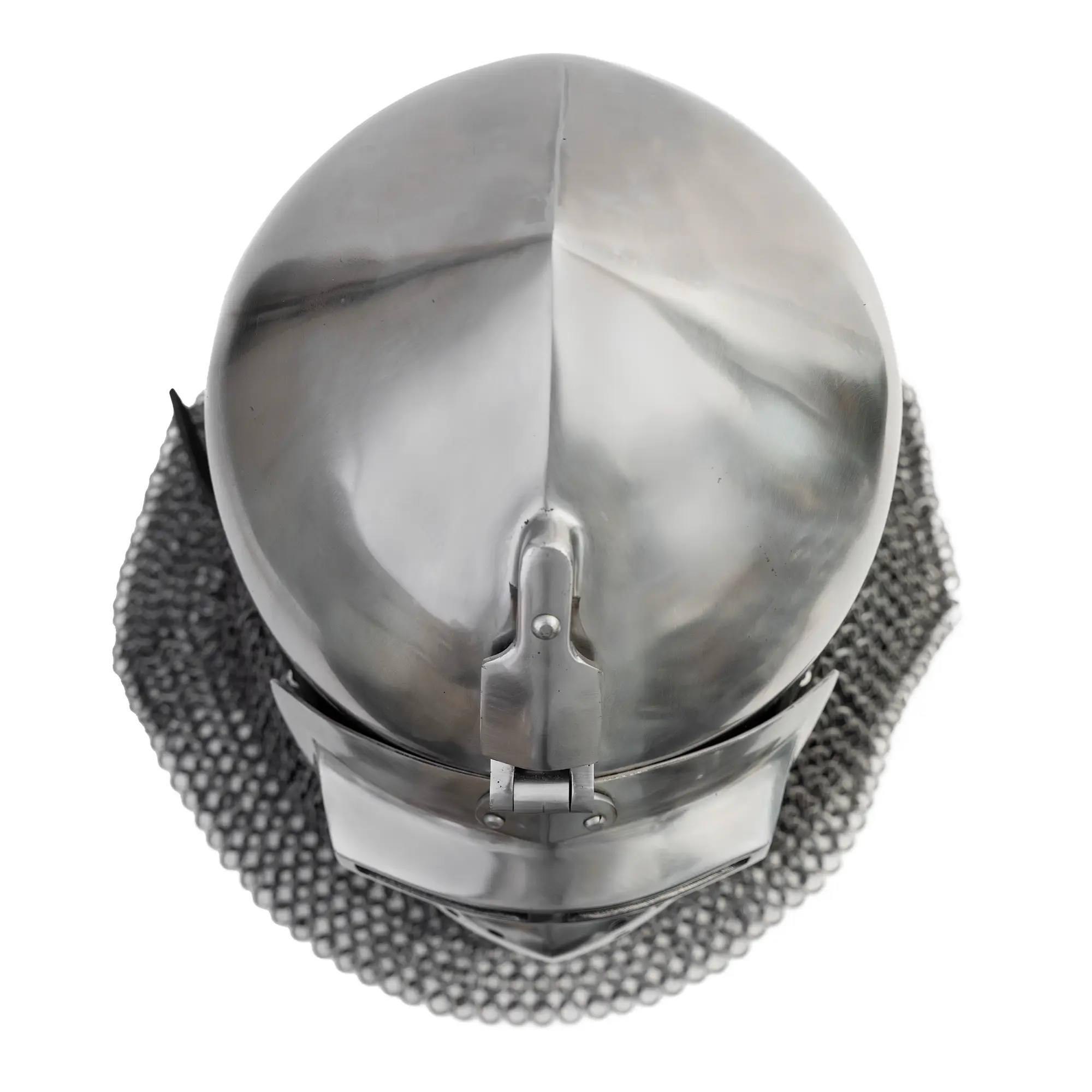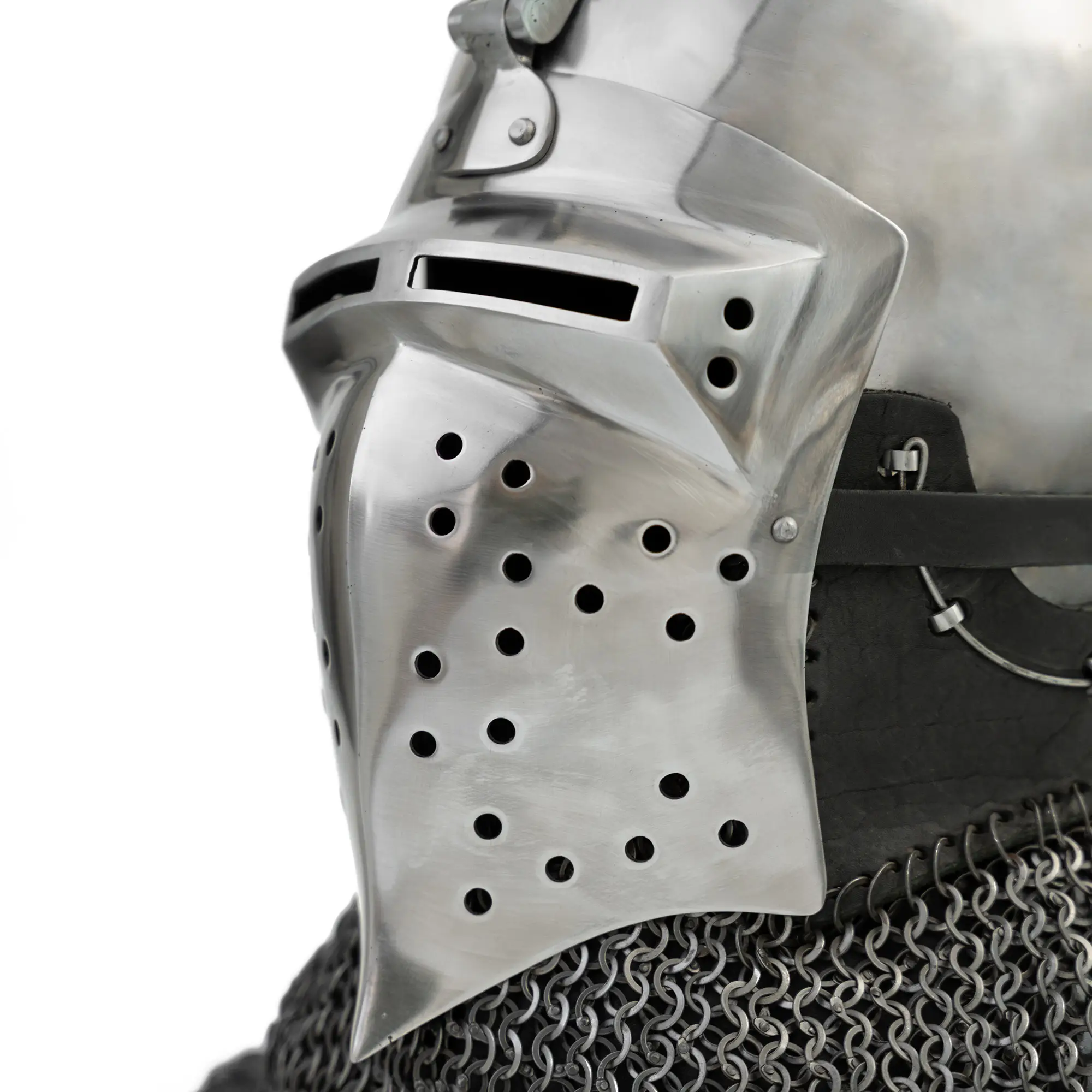 Museum-inspired design, reinforced for real combat. The Marburg Bascinet is based on a 14th-century visor preserved in the Museum für Kunst und Kulturgeschichte in Marburg, Germany. While the shape follows the historical original, the construction is adapted for modern armored combat, making this helmet reliable for full-contact buhurt.