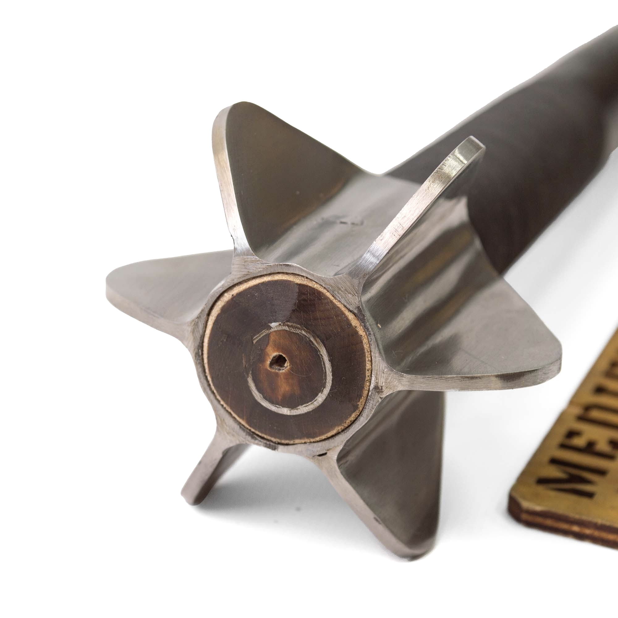 The head of each mace is made of a hardened steel base with 6 flanges and secured with an extra pin.